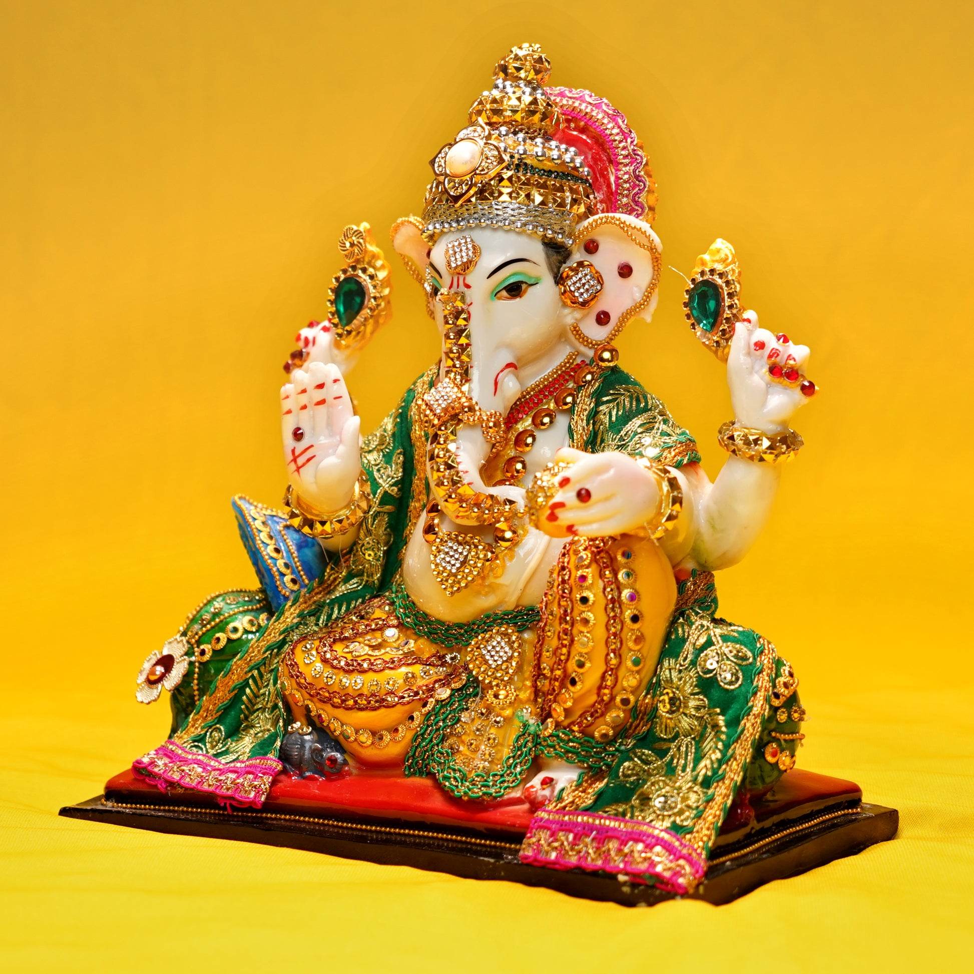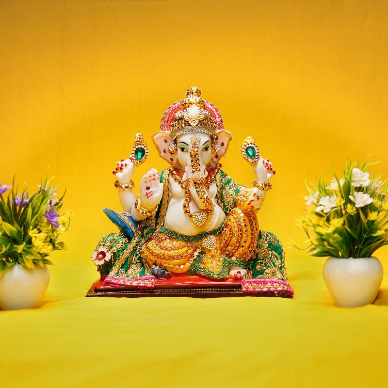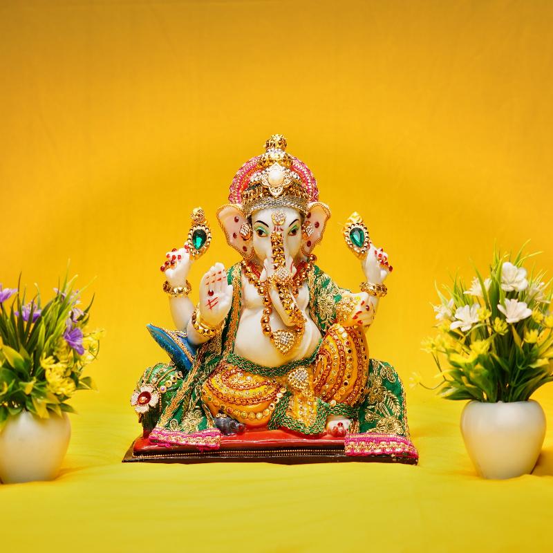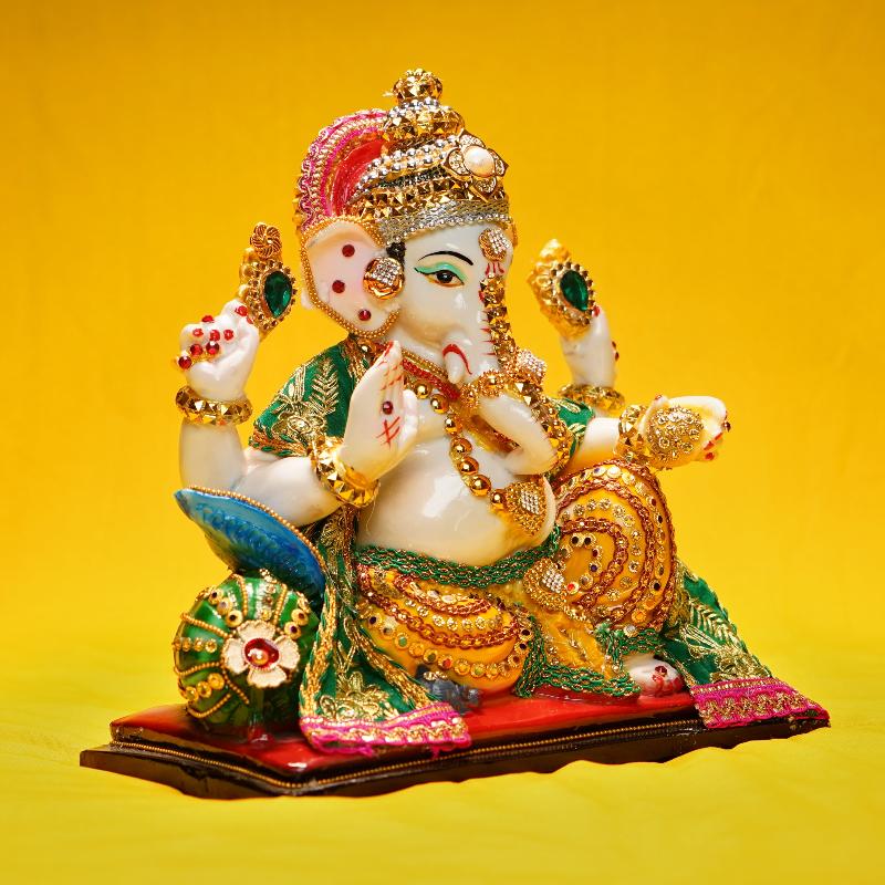 • Intricate Handcrafted Design: Each piece is meticulously crafted to showcase exquisite detailing, from Ganesh Ji’s serene expression to the ornate chowki, all created in a clean and hygienic environment.