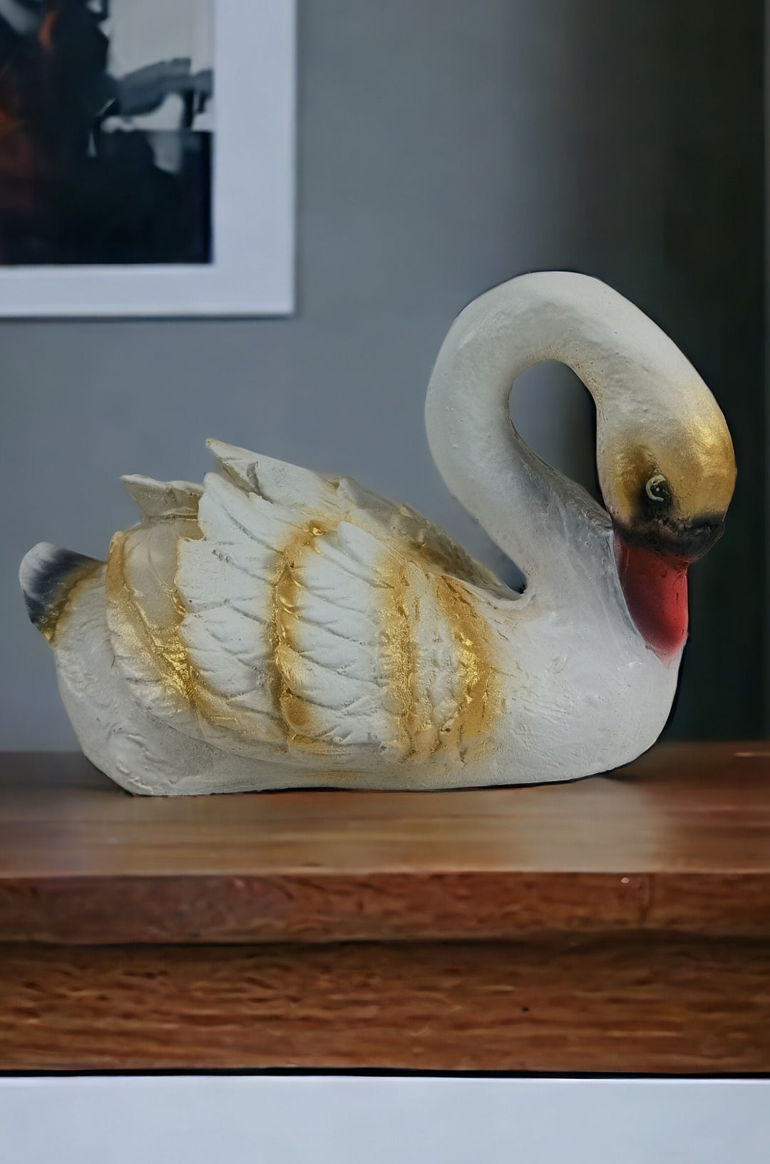 This White & Gold Duck/Swan Decorative Showpiece is more than just a decor item; it's a statement piece that adds character and charm to your space. Its artistic design and elegant colors create an inviting atmosphere, making it a delightful addition to your home or a thoughtful gift for loved ones.