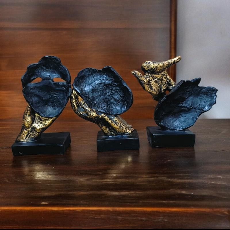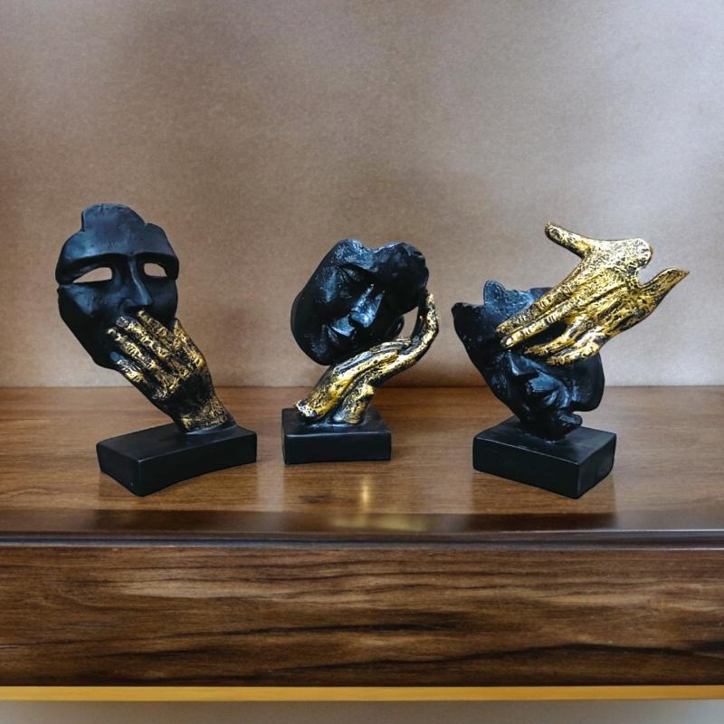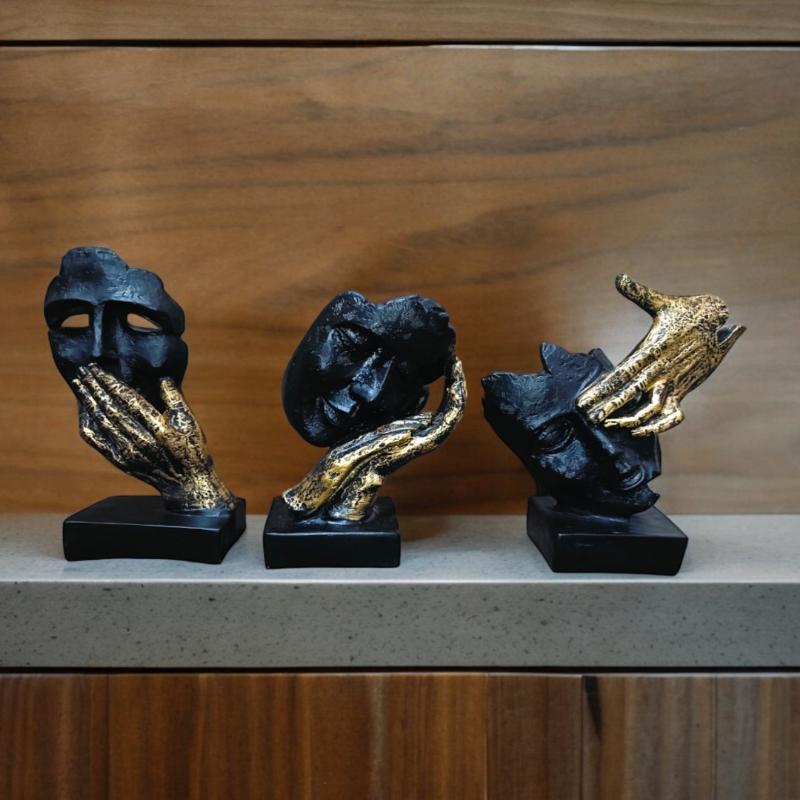 Make a bold statement in your home or office with this captivating Human Face showpiece, featuring a striking design of three faces, each uniquely expressing emotion through hand placements on the mouth, ear, and eyes. Crafted from high-quality polyrisen, this art piece combines modern aesthetics with deep symbolism, representing communication, perception, and introspection. Perfect for any contemporary decor, this showpiece adds a touch of intrigue and thought-provoking beauty to your space.