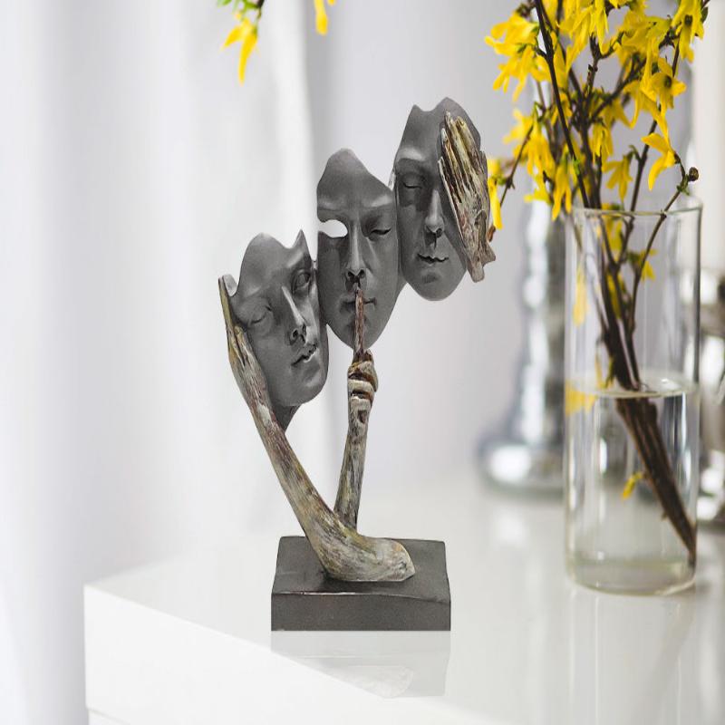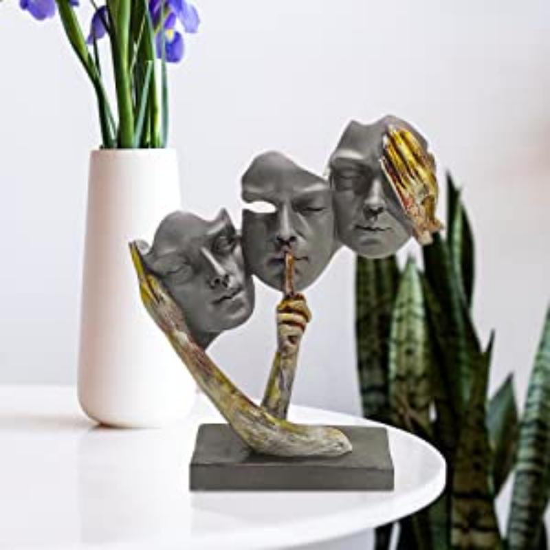 Human Face with Hand on his Mouth, Ear, Eyes Showpiece | 3 Faces
