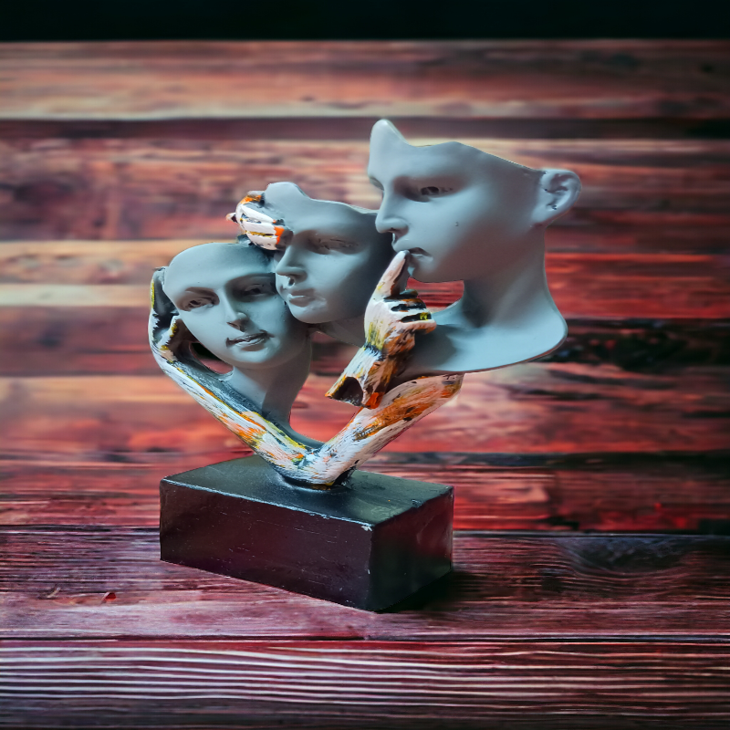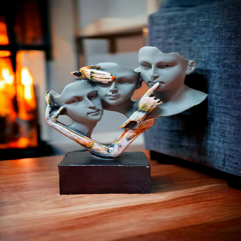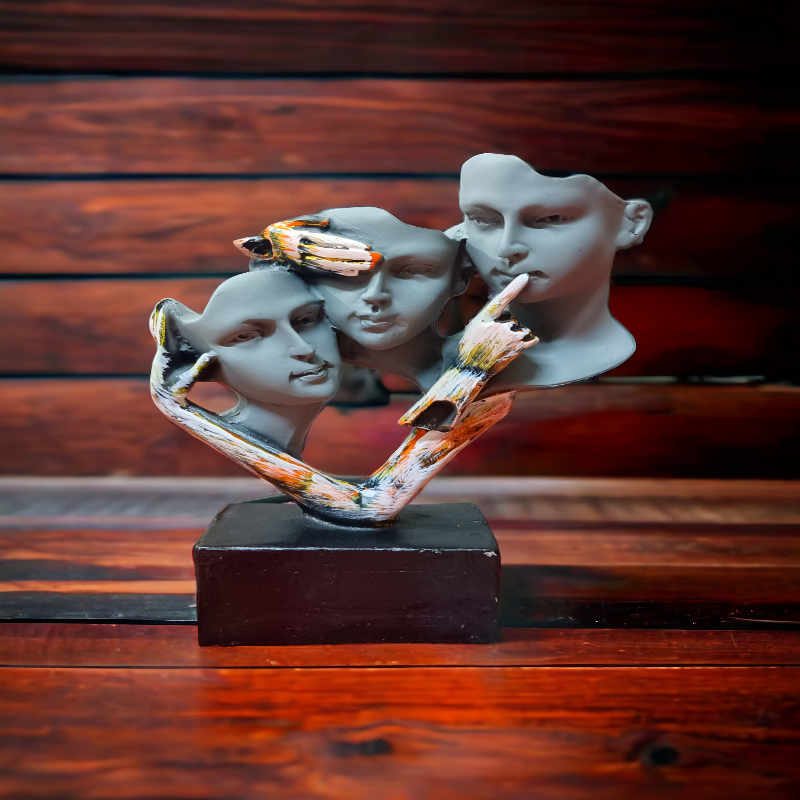Discover a striking blend of artistry and symbolism with our Human Face showpiece, featuring three distinct faces and an extra hand design. Crafted from high-quality polyrisen, this unique piece captures the essence of human emotion and expression, making it a captivating addition to any decor. Ideal for collectors or those who appreciate premium craftsmanship, this showpiece serves not only as a decorative accent but also as a conversation starter.