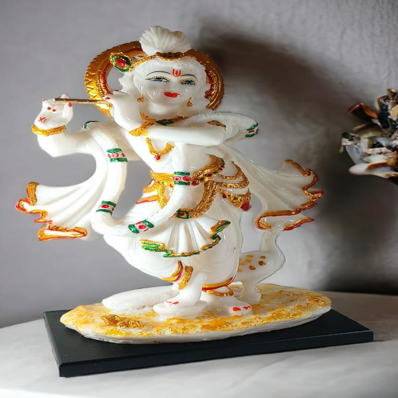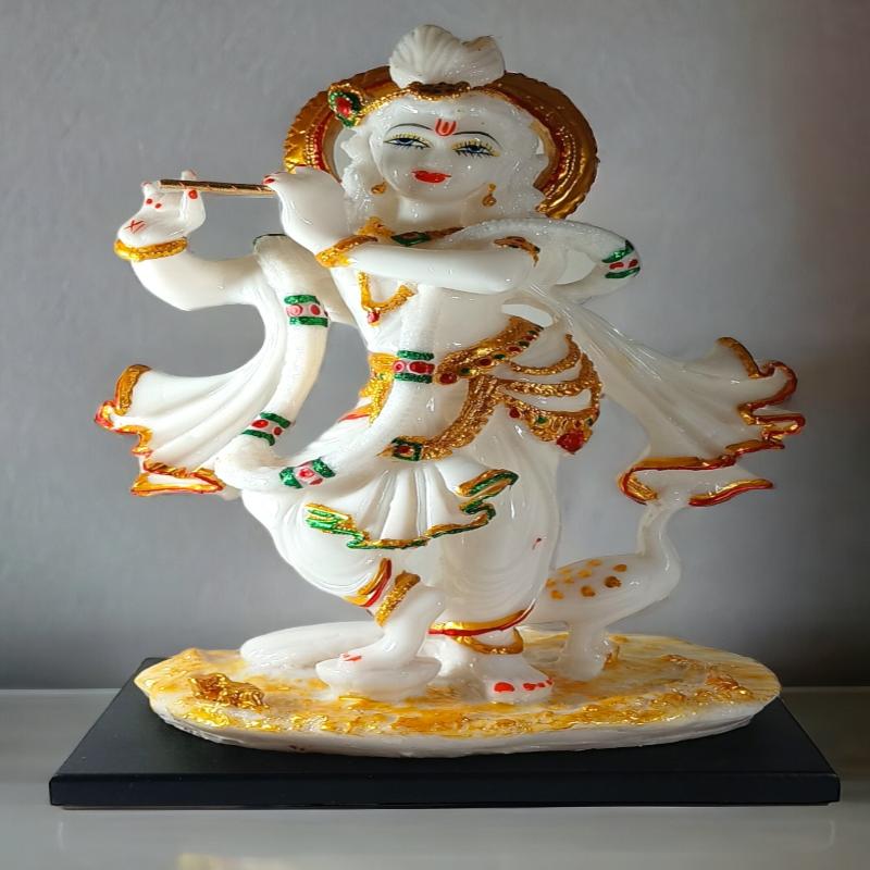 Immerse yourself in the divine aura of our beautifully crafted Lord Krishna statue, made from high-quality marble. This exquisite piece captures the essence of Lord Krishna, symbolizing love, wisdom, and joy. Perfect for adorning your home altar or as a striking centerpiece in any space, this statue radiates serenity and spiritual energy. It makes an ideal gift for special occasions like birthdays, weddings, and religious festivals, serving as a cherished addition to any collection.