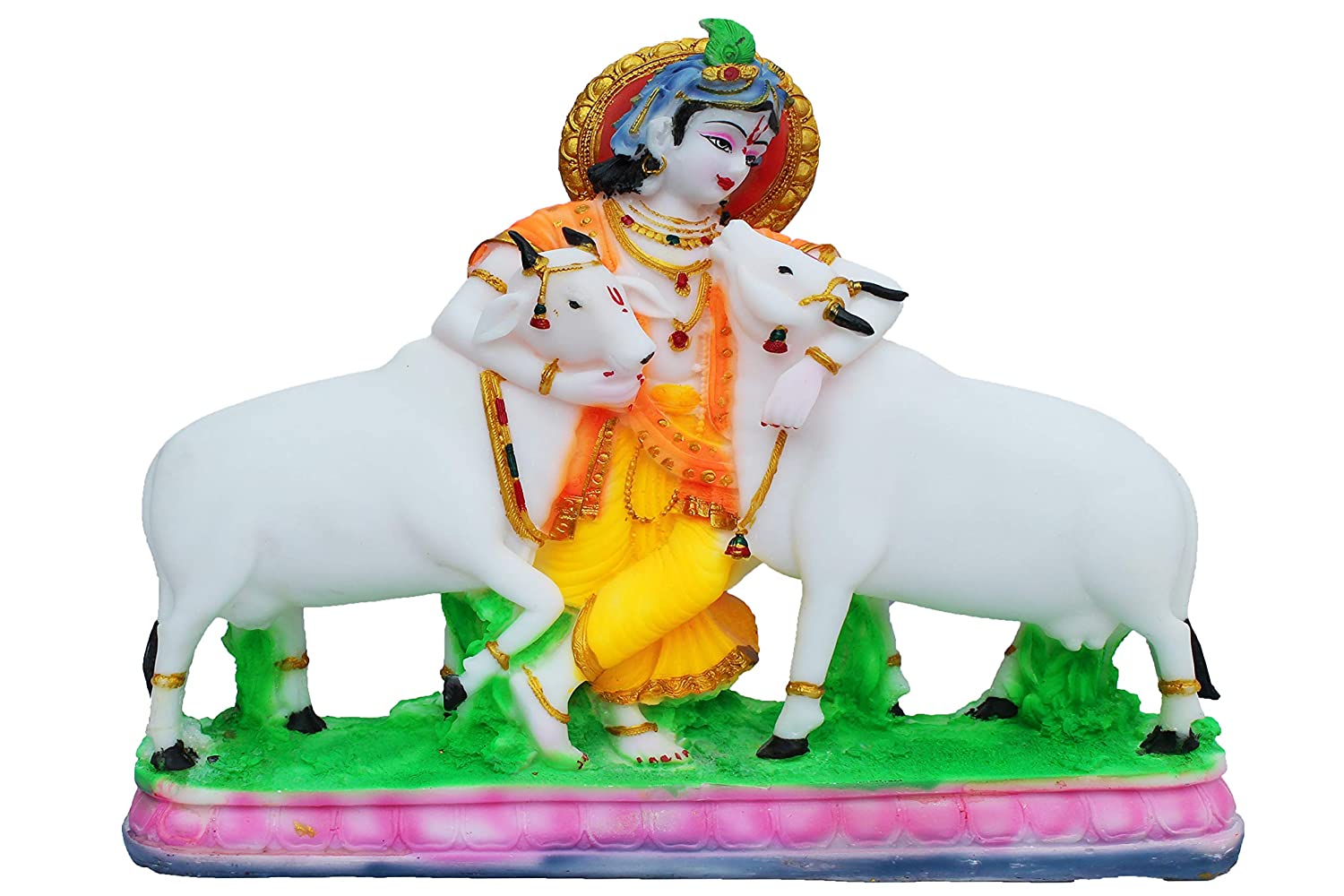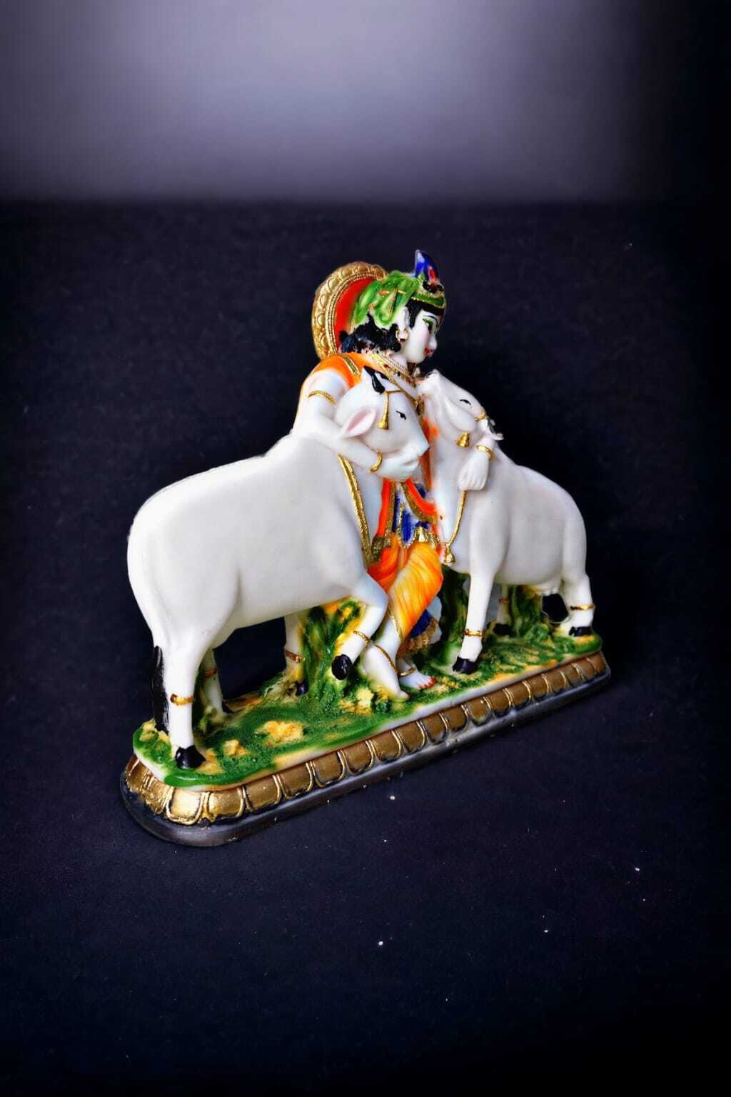 • Intricate Detailing: Each statue is meticulously handcrafted, highlighting the fine details in Krishna’s attire and the gentle features of the cows, creating a captivating piece of art.