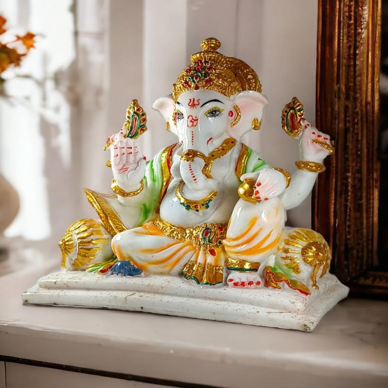 Transform your home décor with our enchanting Ganesha Kamal Base Sitting Statue, exquisitely crafted from vibrant multicolor marble. This stunning piece captures the essence of Lord Ganesha, the remover of obstacles and the god of wisdom, in a seated position on a beautiful lotus base. The intricate details and rich colors bring life and energy to any space, making it a perfect addition to your home or office.