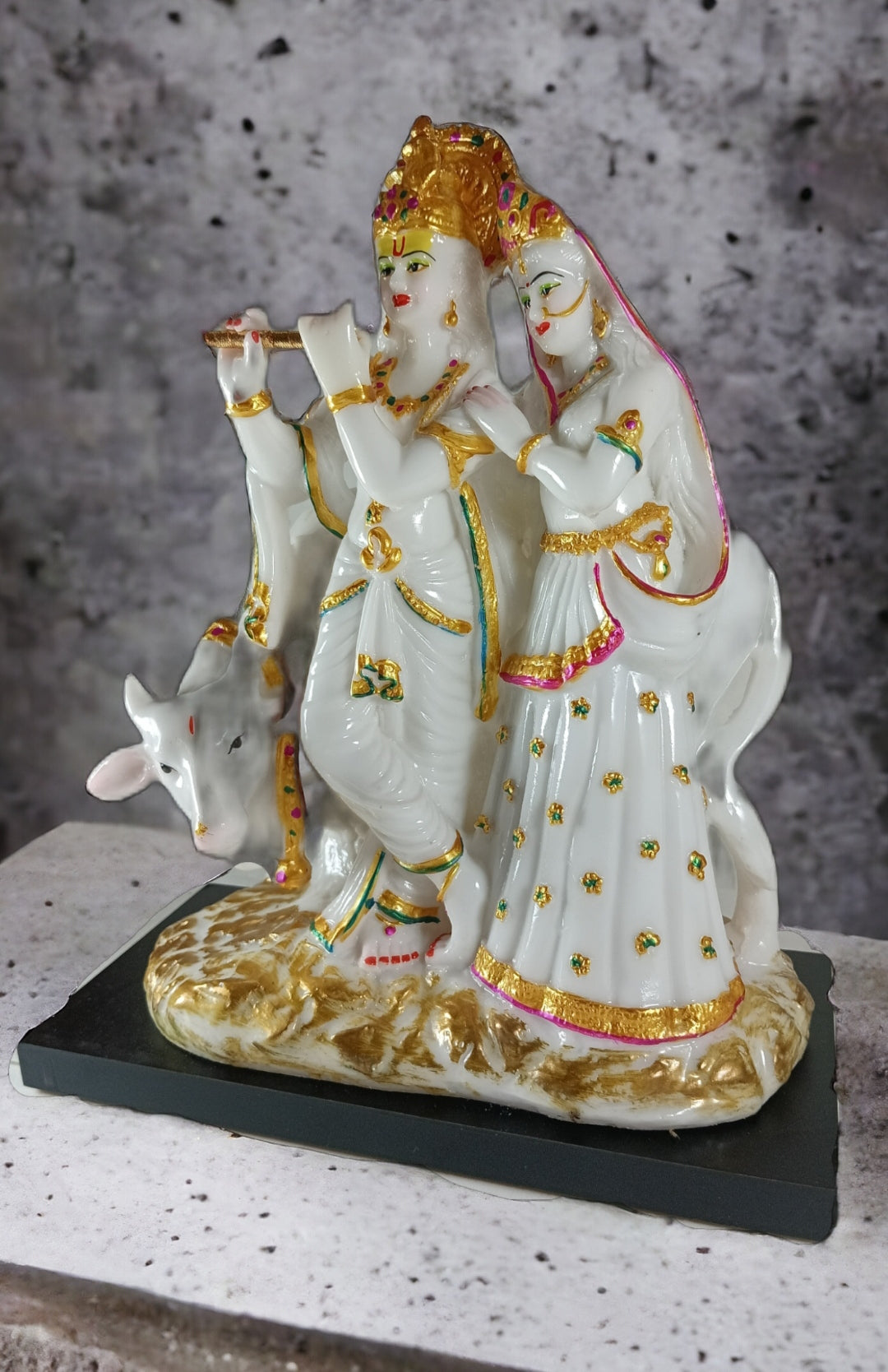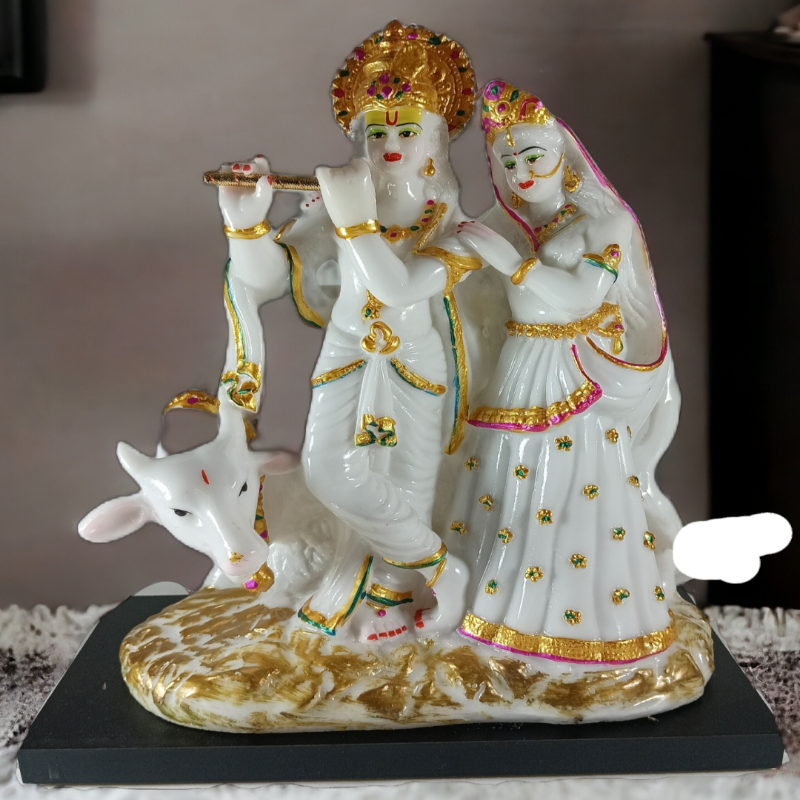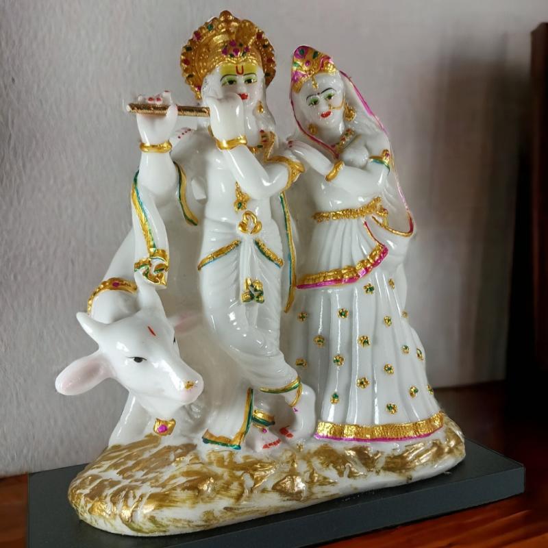 • Artistic Detailing: Each piece showcases meticulous craftsmanship, with intricate designs that highlight the divine attributes of Radha and Krishna, as well as the gentle cow.